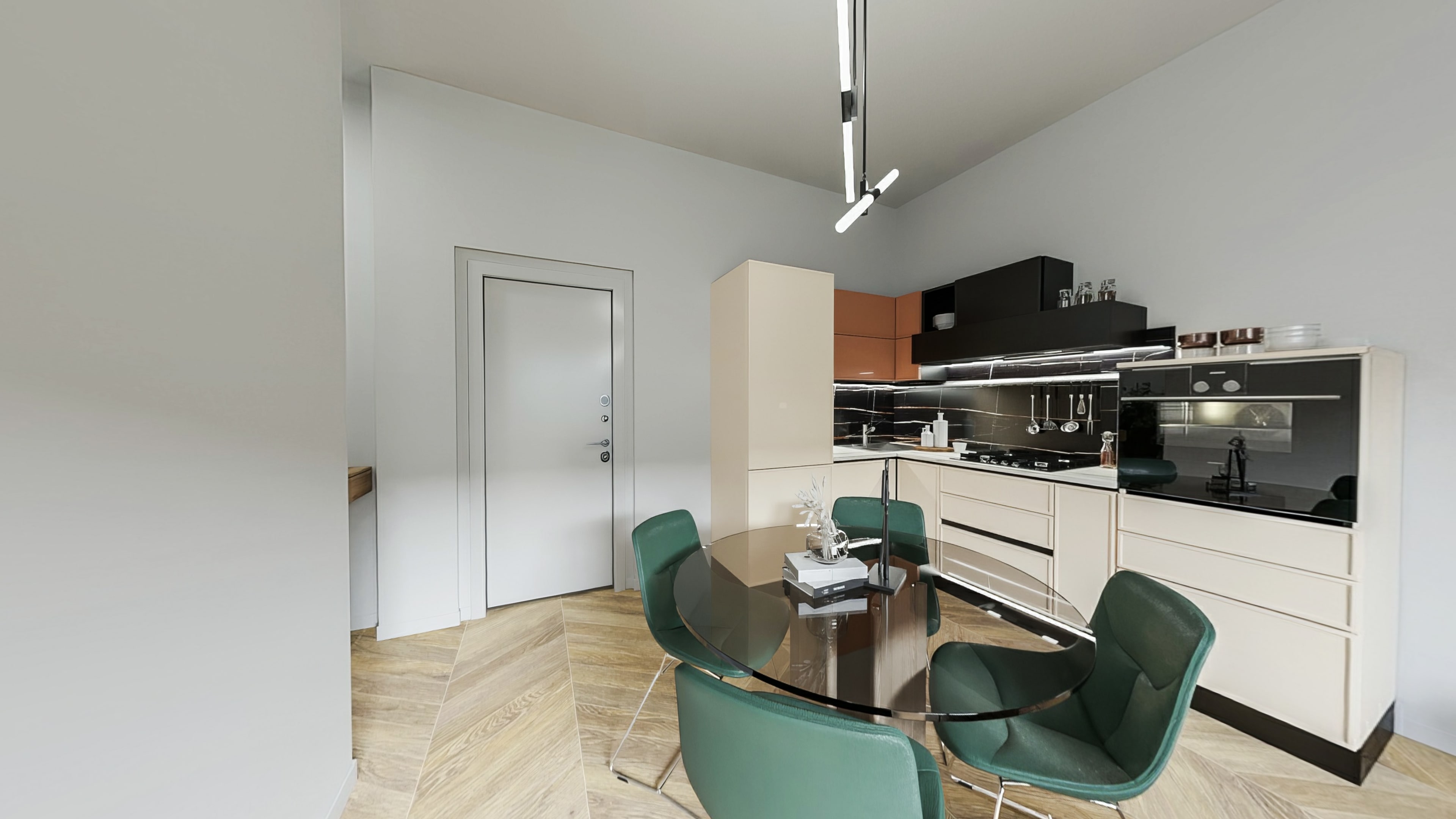 L’immobile è composto da un’accogliente zona giorno con cucina a vista che crea uno spazio aperto e conviviale, una camera da letto matrimoniale, un bagno e un balconcino. Il tutto è progettato per massimizzare la funzionalità e la vivibilità.